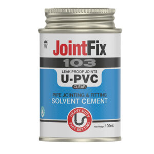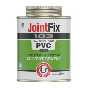 JOINTFIX PVC Adhesive is for use on all types of PVC plastic pipe applications. It is suitable for use with potable water pressure systems, irrigation, turf, foam core, conduit, and sewer, drain, waste and vent systems.