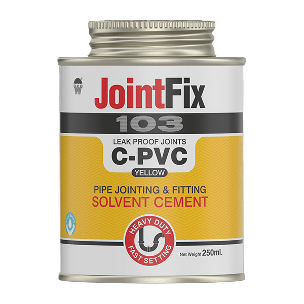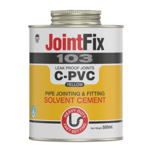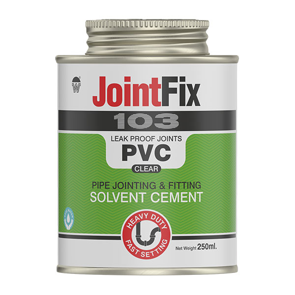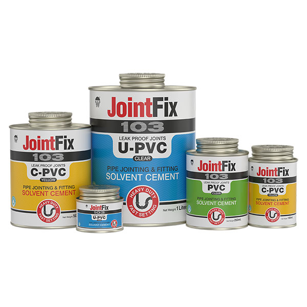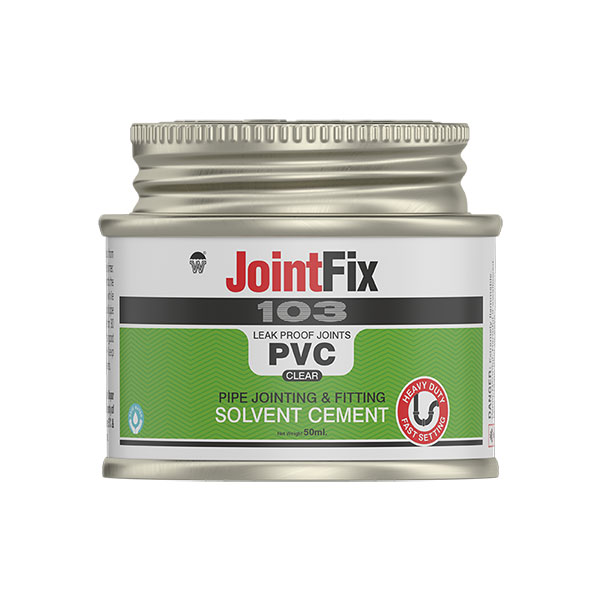 JOINTFIX PVC adhesive is an industrial grade, clear low VOC emission, medium bodied, fast setting, high strength PVC solvent adhesive for all classes and schedules of pipe and fittings. Can be used without primer on non-pressure systems if local codes permit.