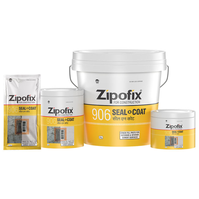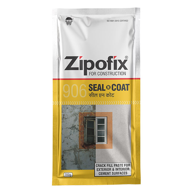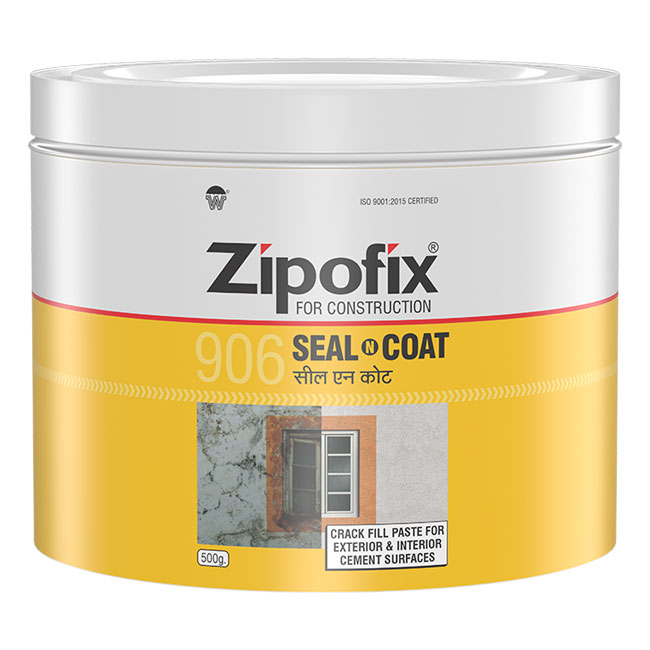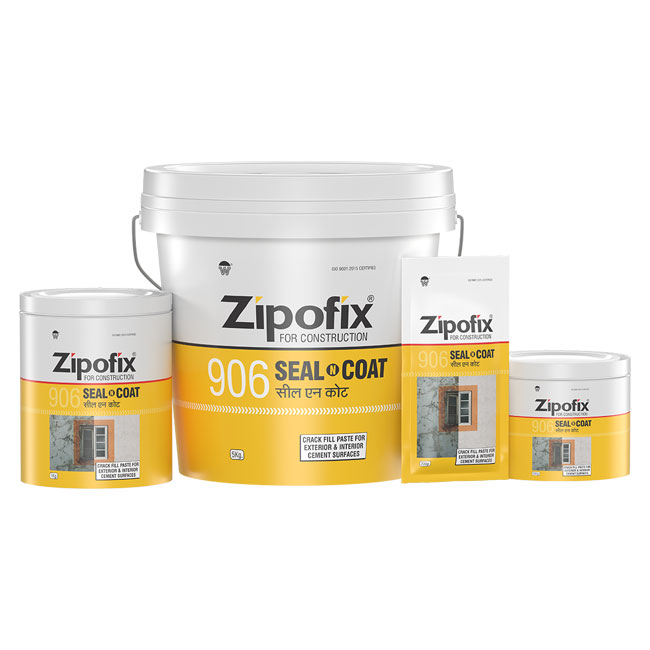 ZIPOFIX 906 SEAL ‘N’ COAT Shrink free is composed of quality polymers, select fillers & additives. It is fast drying and flexible, light weight, putty like material used for filling cracks in plastered surfaces. It is 100%